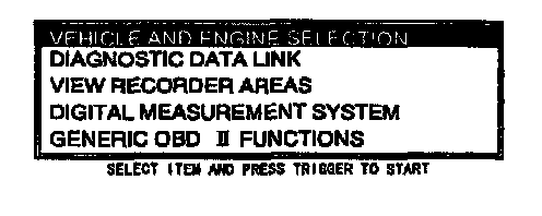 7. Move the cursor to DIAGNOSTIC DATA LINK in the main menu screen. Press the trigger key to enter into menu system diagnostics.
