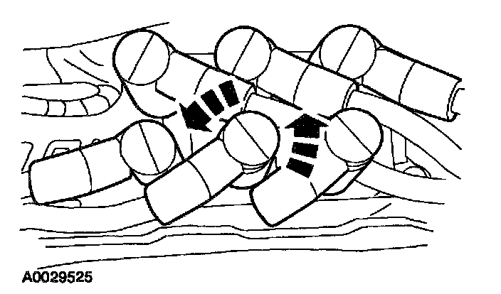 CAUTION: Proper installation of the spark plug wires is critical to vehicle operation. If one spark plug wire is not properly installed on the spark plug or ignition coil, both spark plugs connected to that segment of the ignition coil may not fire under load.