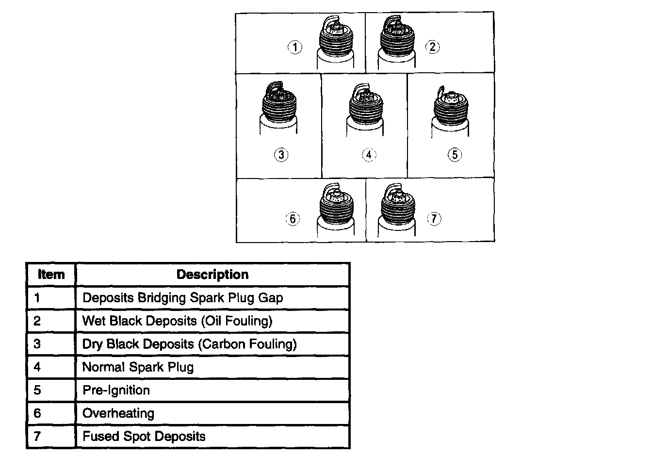 SPARK PLUG REMOVAL / INSTALLATIONNOTE: Refer to the chart in Step 5 to determine the condition of the spark plugs.