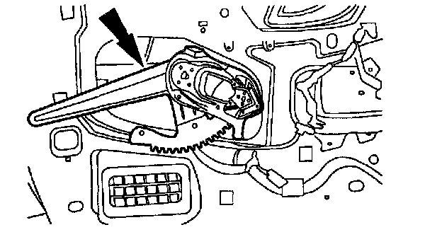 NOTE: The power window regulator has four rivets; the manual window regulator has three.
