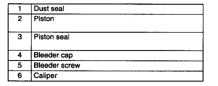 CALIPER (FRONT) DISASSEMBLY/ASSEMBLY1. Disassemble in the order indicated in the table.
