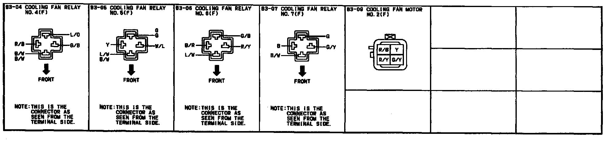 B-4 - Cooling Fan System (Without A/C) Connectors: