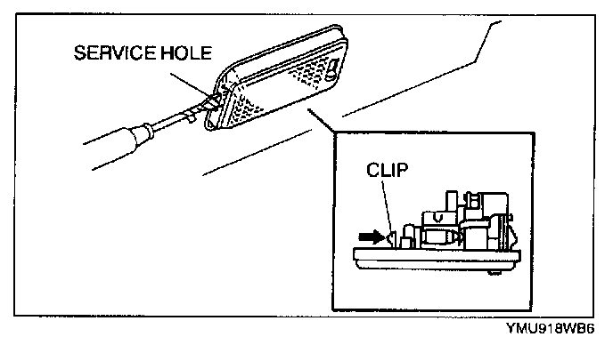 1. Insert a tape-wrapped flathead screwdriver into the service hole.