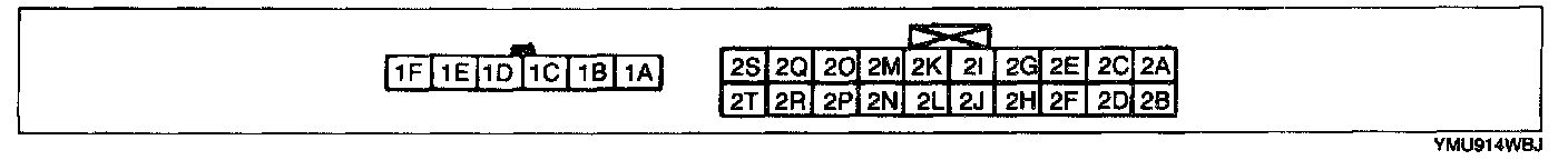 3. Disconnect the theft-deterrent control module connector before inspecting for continuity at terminals 1F, 2K, 2M, 2N, and 2R.