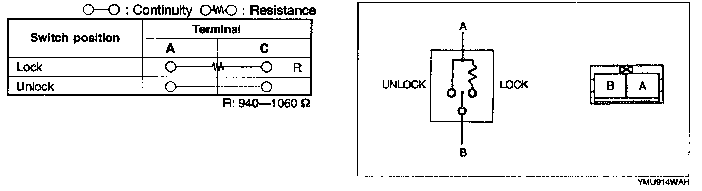 Inspect for continuity between the door lock switch terminals using an ohmmeter.