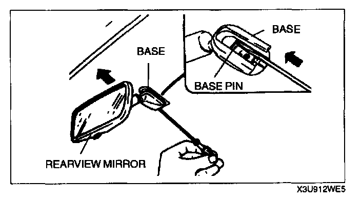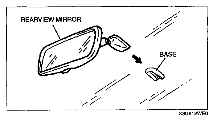 REARVIEW MIRROR REMOVAL1. Insert a flathead screwdriver between the mirror and the base.