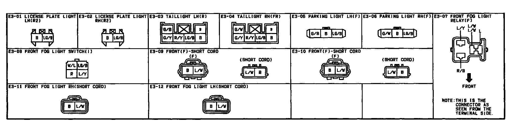 E-3 - Front Fog Light / License Plate Light / Parking Light / Tail Light Connectors: