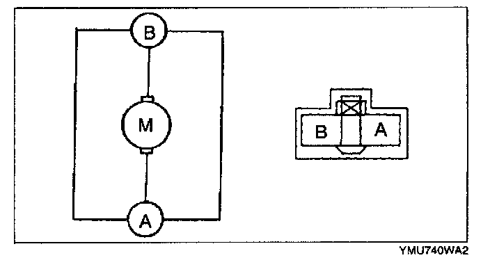 1. Disconnect the front blower motor connector.2. Connect battery positive voltage to terminal B and ground to terminal A of the front blower motor and verify its that thee motor operates.
