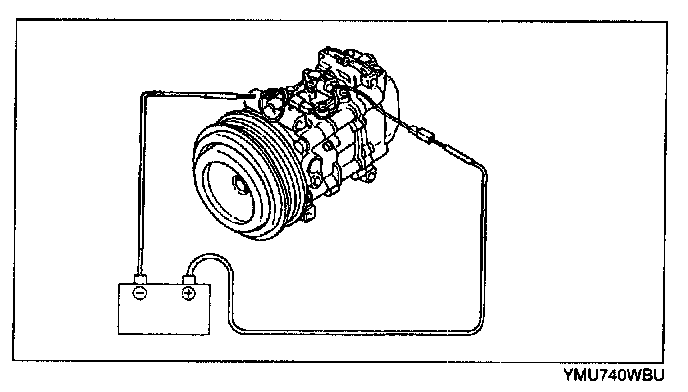 2. Connect battery positive voltage to terminal A of the magnetic clutch and ground to A/C compressor body.