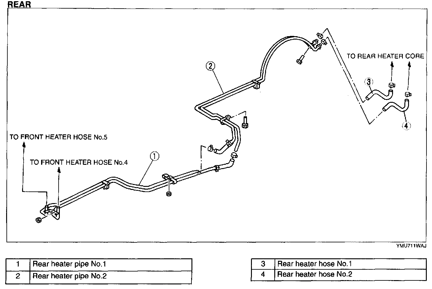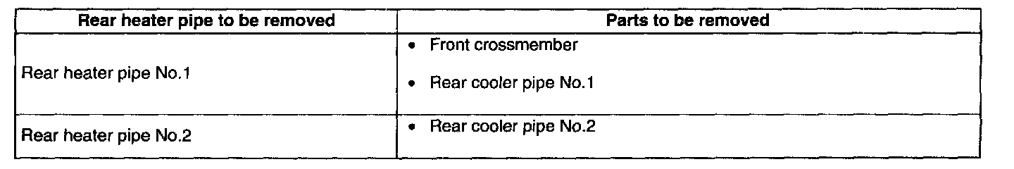 - When the rear heater pipe is removed bleed the air from the rear heater pipe thoroughly after refilling the engine coolant to prevent air from being trapped in the rear heater pipe.