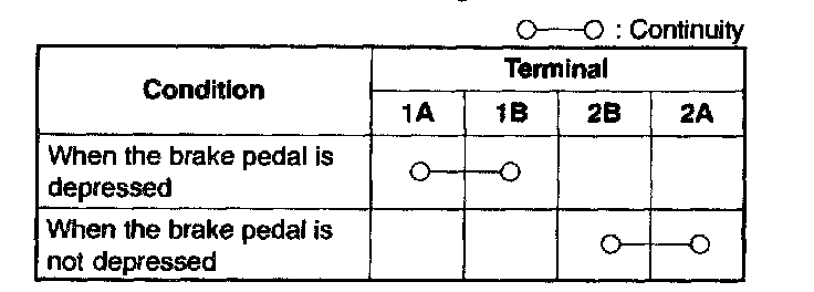 2. Inspect for continuity between the terminals of the brake switch connector using the circuit tester.