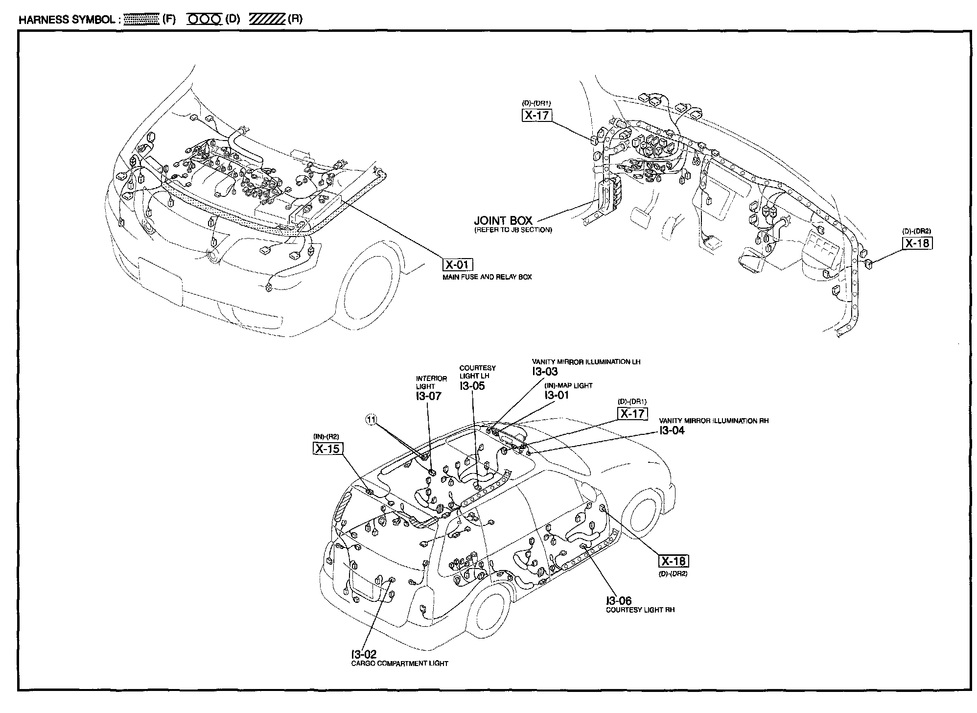 I-3 - Cargo Compartment Light / Courtesy Light / Interior Light / Map Light / Vanity Mirror Illumination Harness / Connector Symbols: