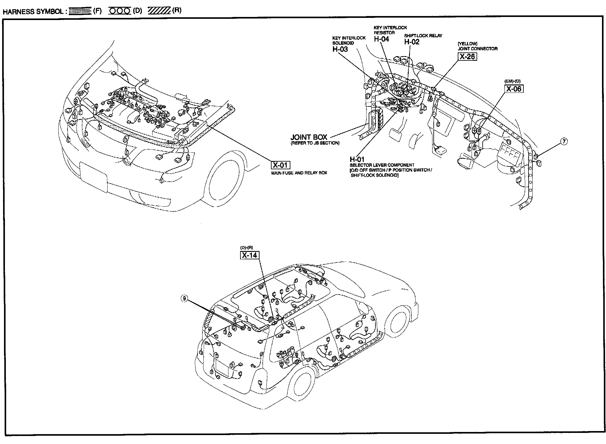 H - Key Interlock System / Shift-lock System Harness / Connector Symbols: