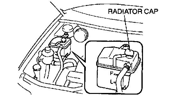 Verify that the coolant level in the coolant reservoir is between the F and L marks.