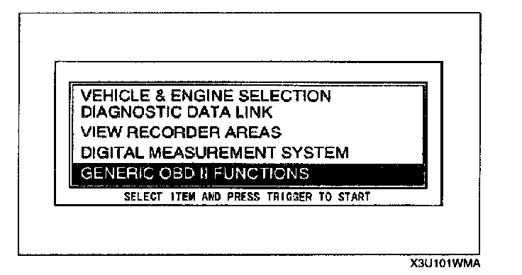 2. Move the cursor to GENERIC OBD II FUNCTIONS.
