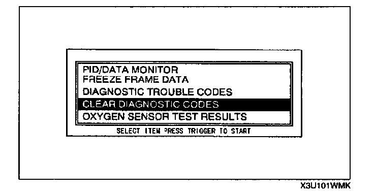 5. Move the cursor to CLEAR DIAGNOSTIC CODES.