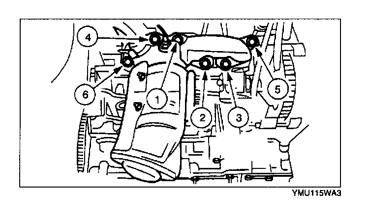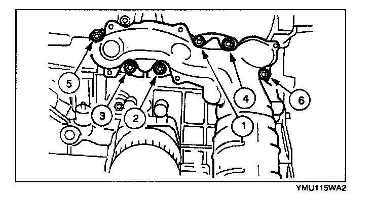 EXHAUST SYSTEM REMOVAL/INSTALLATIONWARNING: When the engine and exhaust system are hot, they can badly burn. Turn off the engine and wait until they are cool before removing the exhaust system.