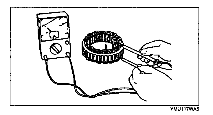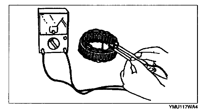 1. Inspect for continuity between the stator coil leads using an ohmmeter.