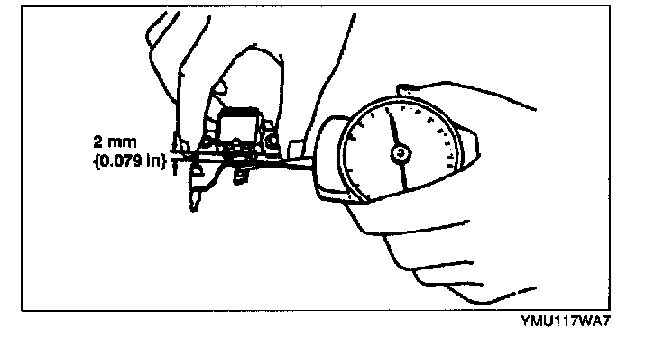 2. Read the spring pressure gauge at the brush tip projection of 2 mm {0.079 in}.