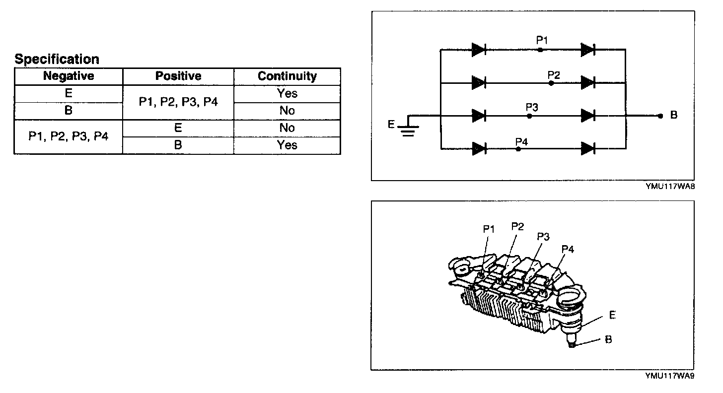 1. Inspect for continuity of the diodes using an ohmmeter.