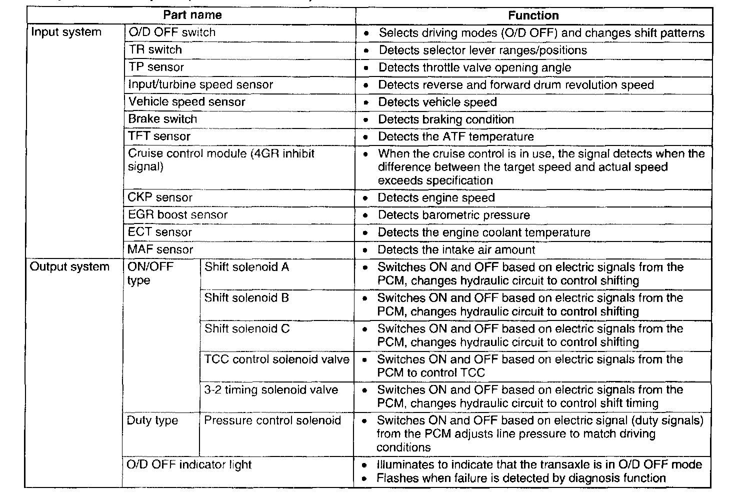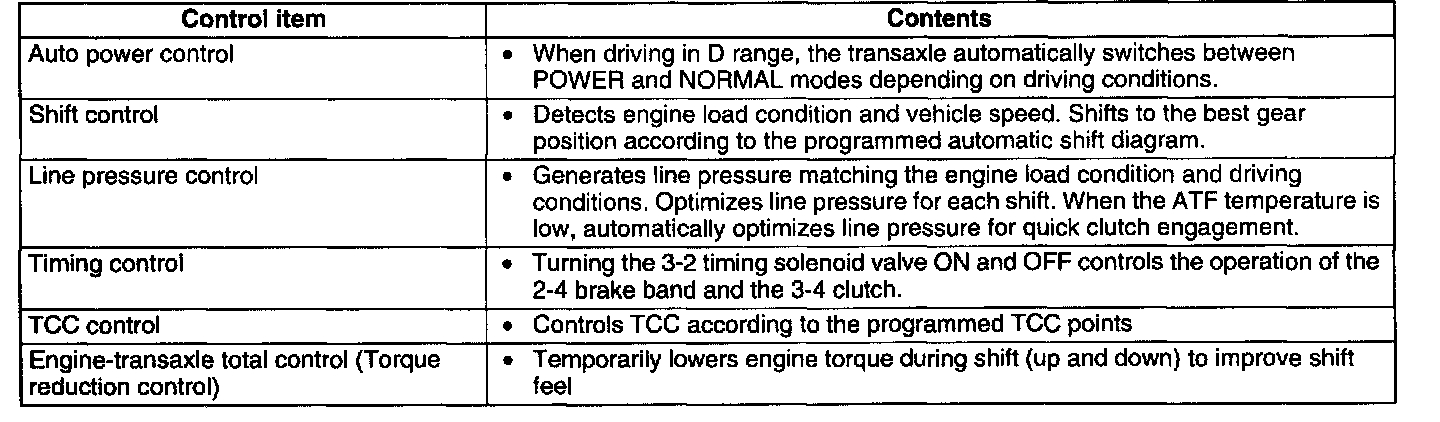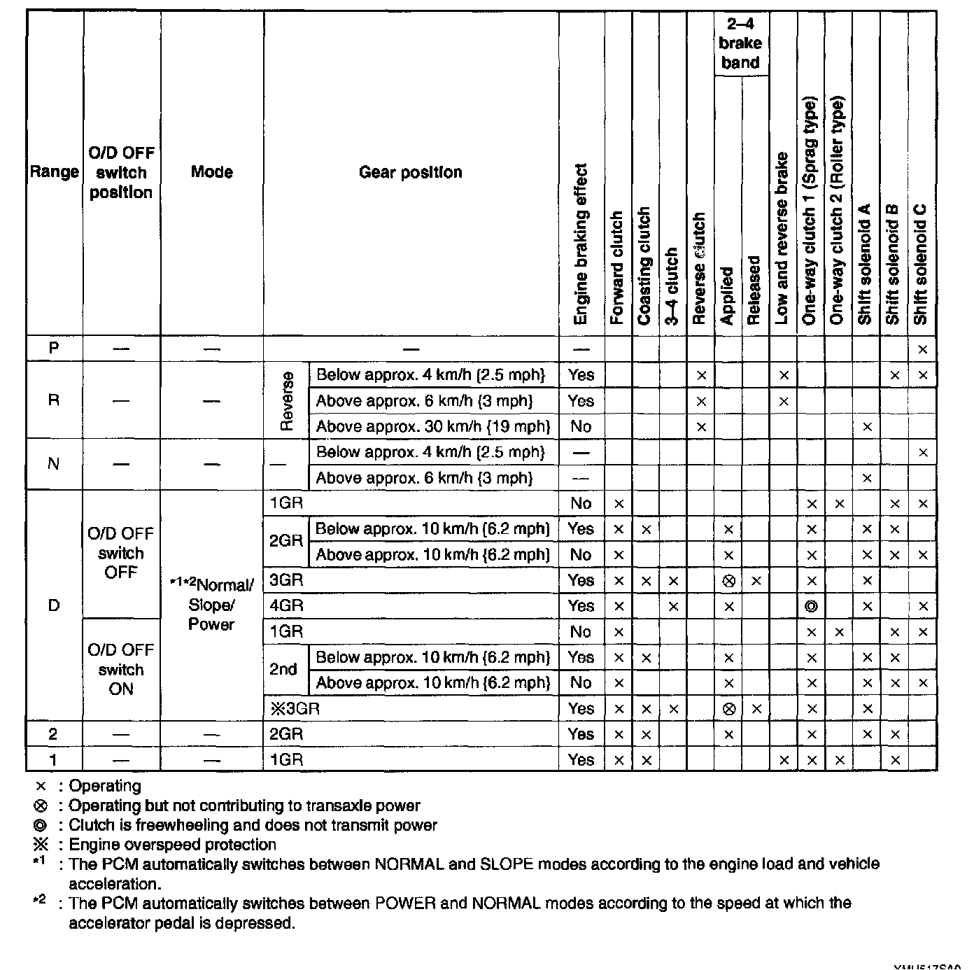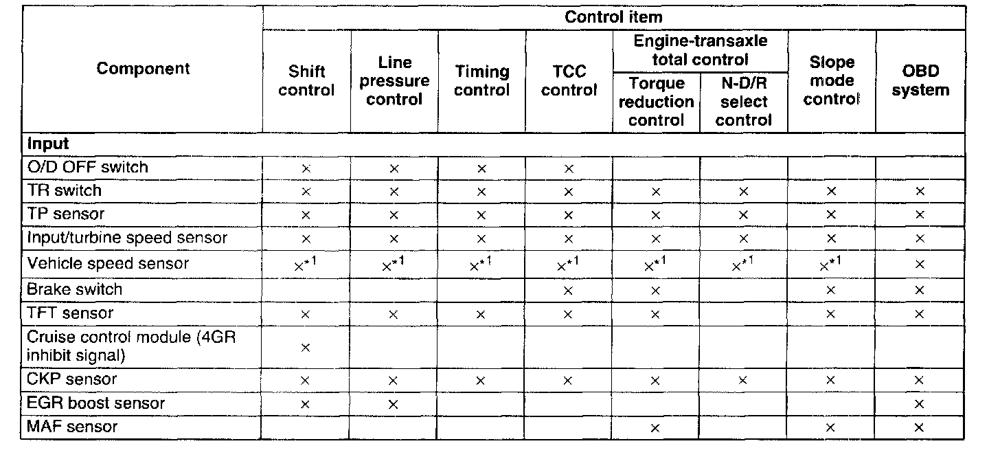 Automatic Transaxle Device Relationship Chart