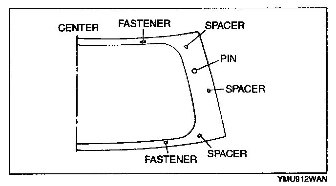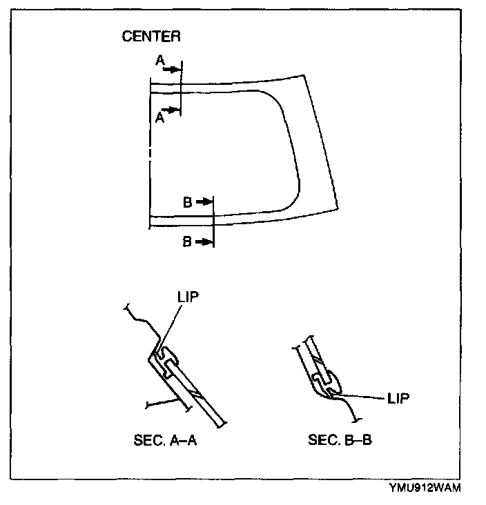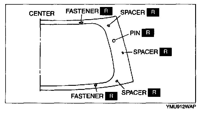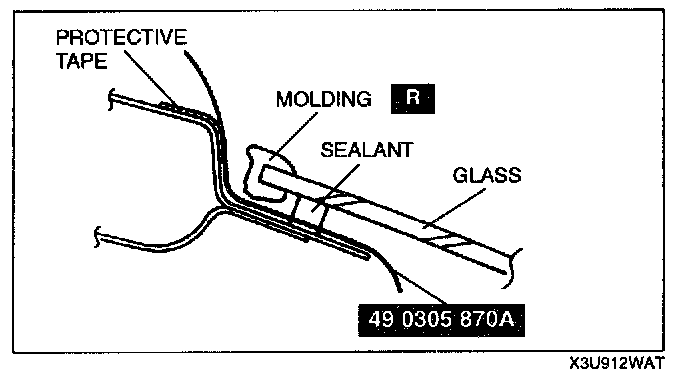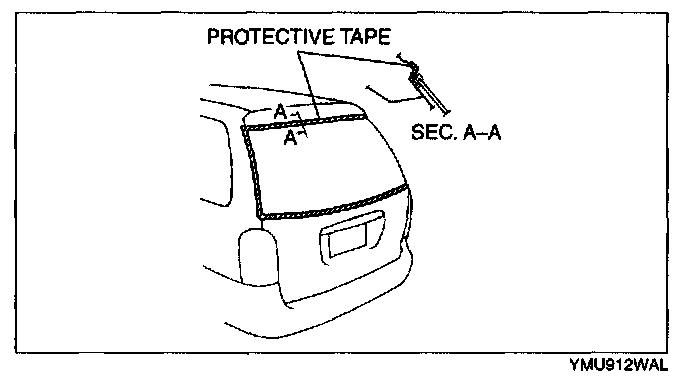 NOTE: Before removing the rear window glass from the body, mark the position of the rear window glass by affixing tape to the windshield and body panel.