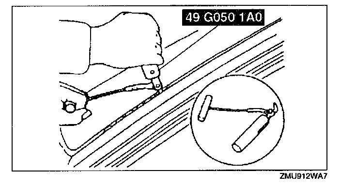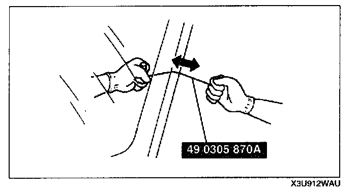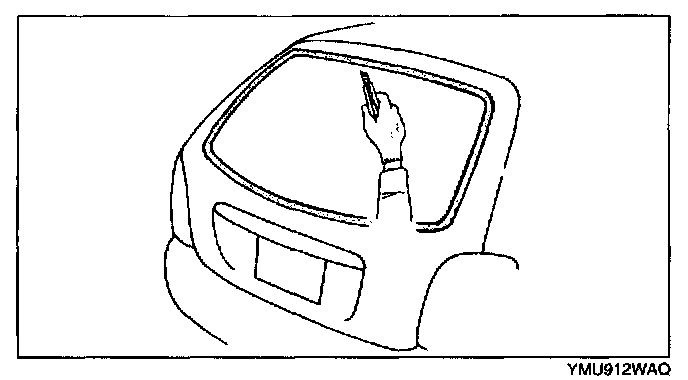 NOTE: For the areas of the sealant that are difficult to cut, use a SST (piano wire) and follow the procedure under "Reusing rear window glass".