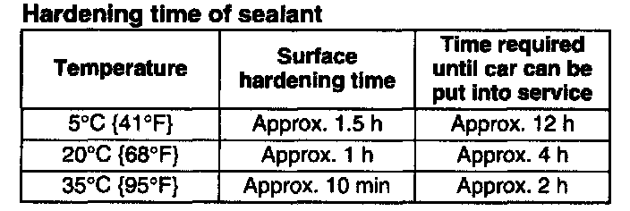 CAUTION: To prevent the sealant from cracking or the glass from being pushed out by air pressure if a door is closed, open all of the windows and leave them open until the sealant has hardened.