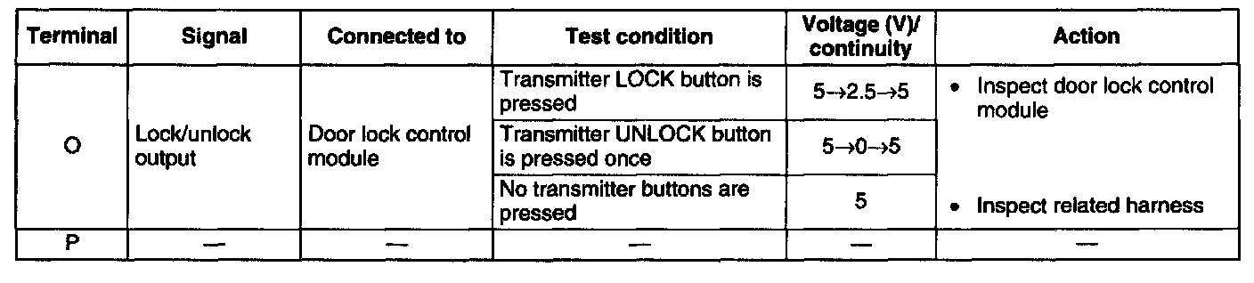 - If the parts and wiring harnesses are okay but the system still does not work properly, perform the keyless entry system problem check.