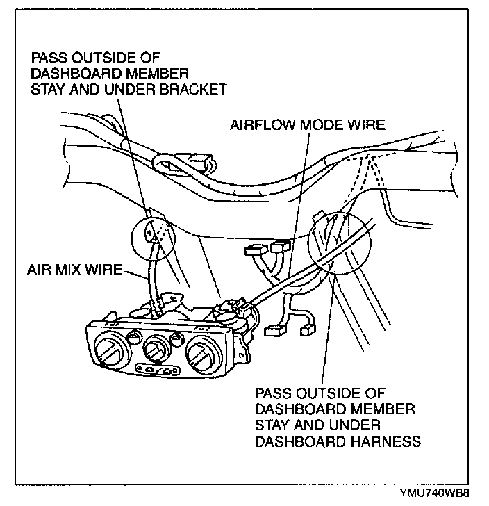 2. Disconnect the air mix and airflow mode wires from each wire clamp and link.