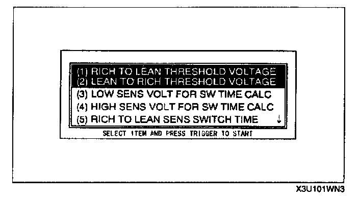 7. Select RICH TO LEAN THRESHOLD VOLTAGE or LEAN TO RICH THRESHOLD VOLTAGE.