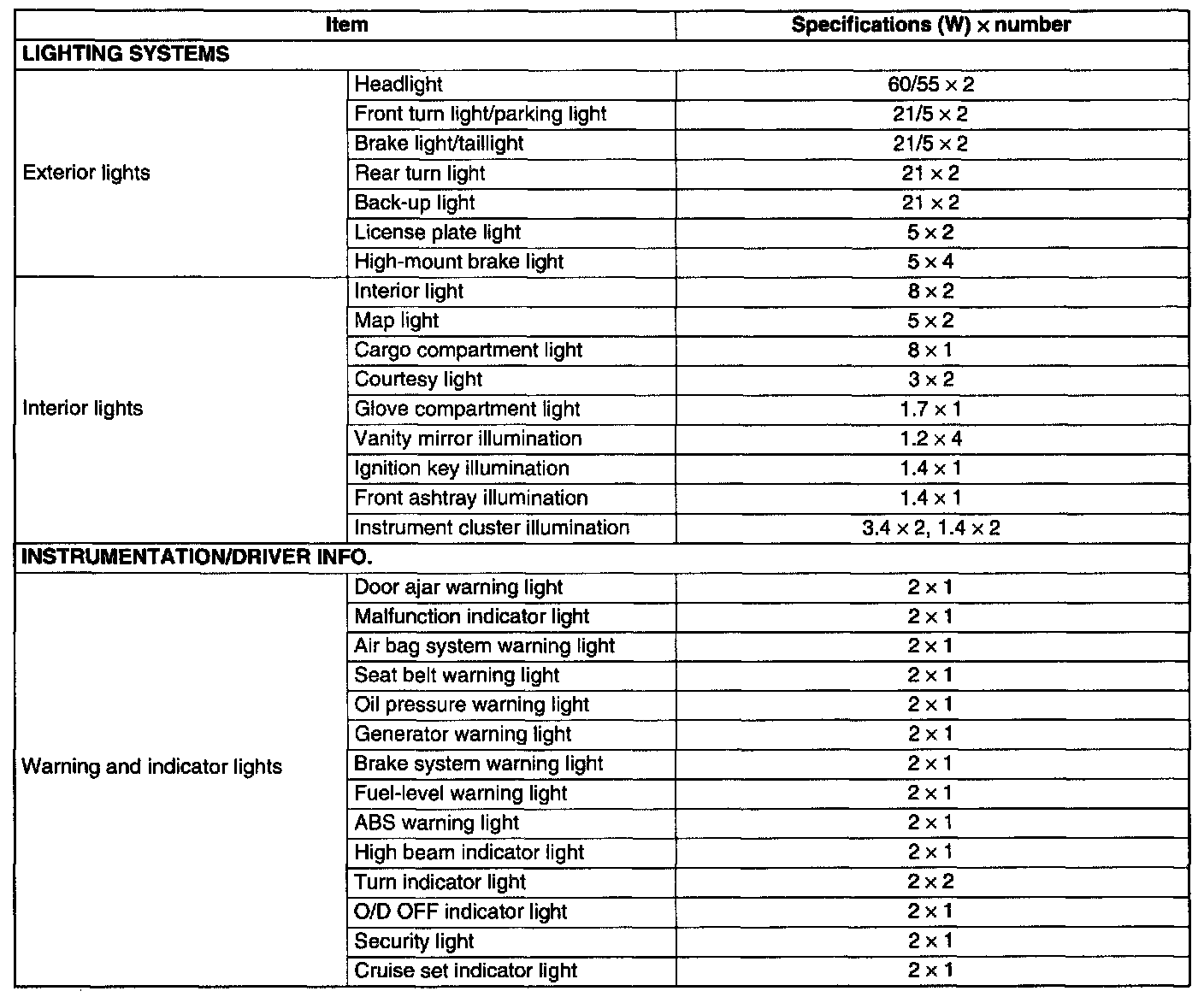 Light Bulb Specifications: