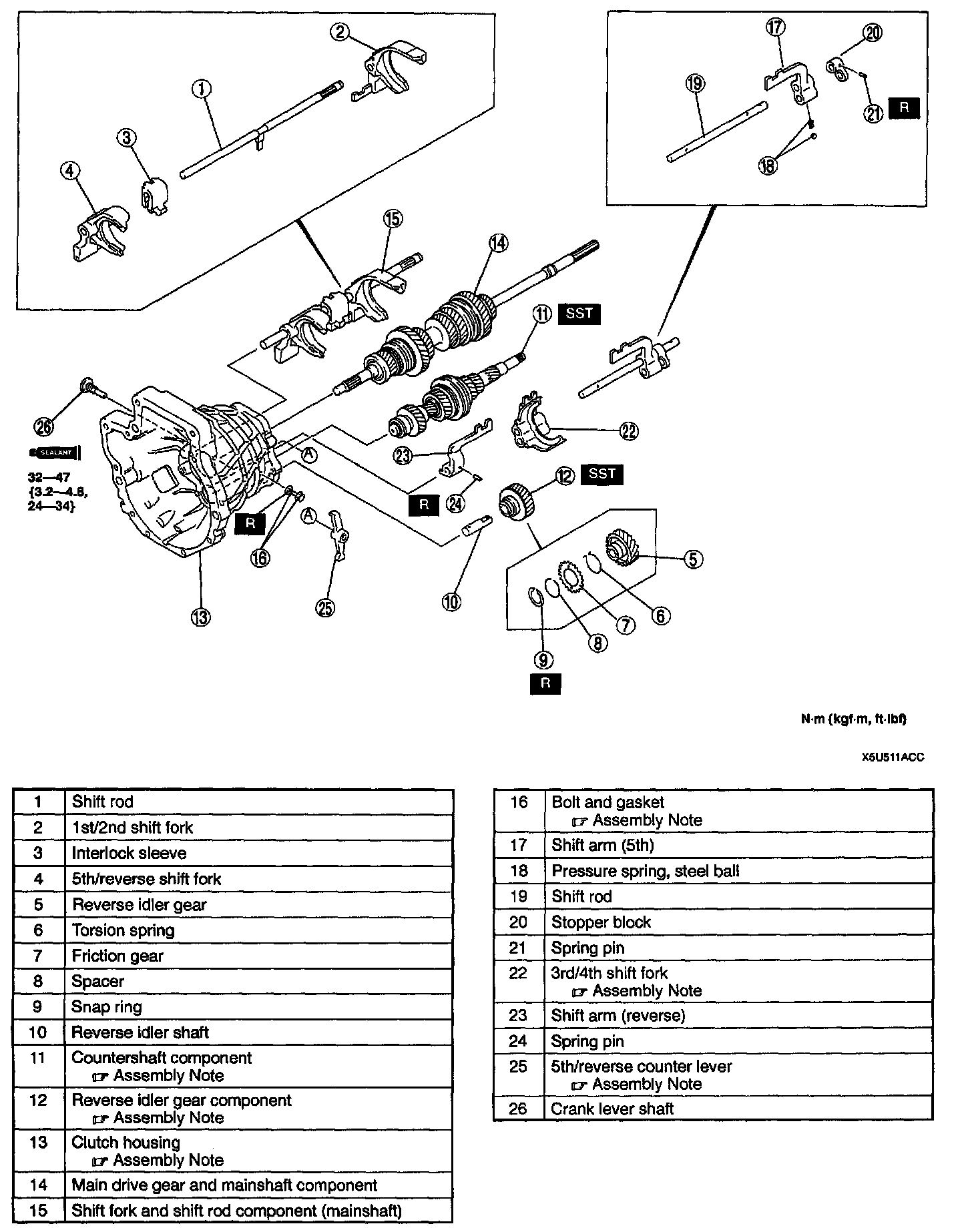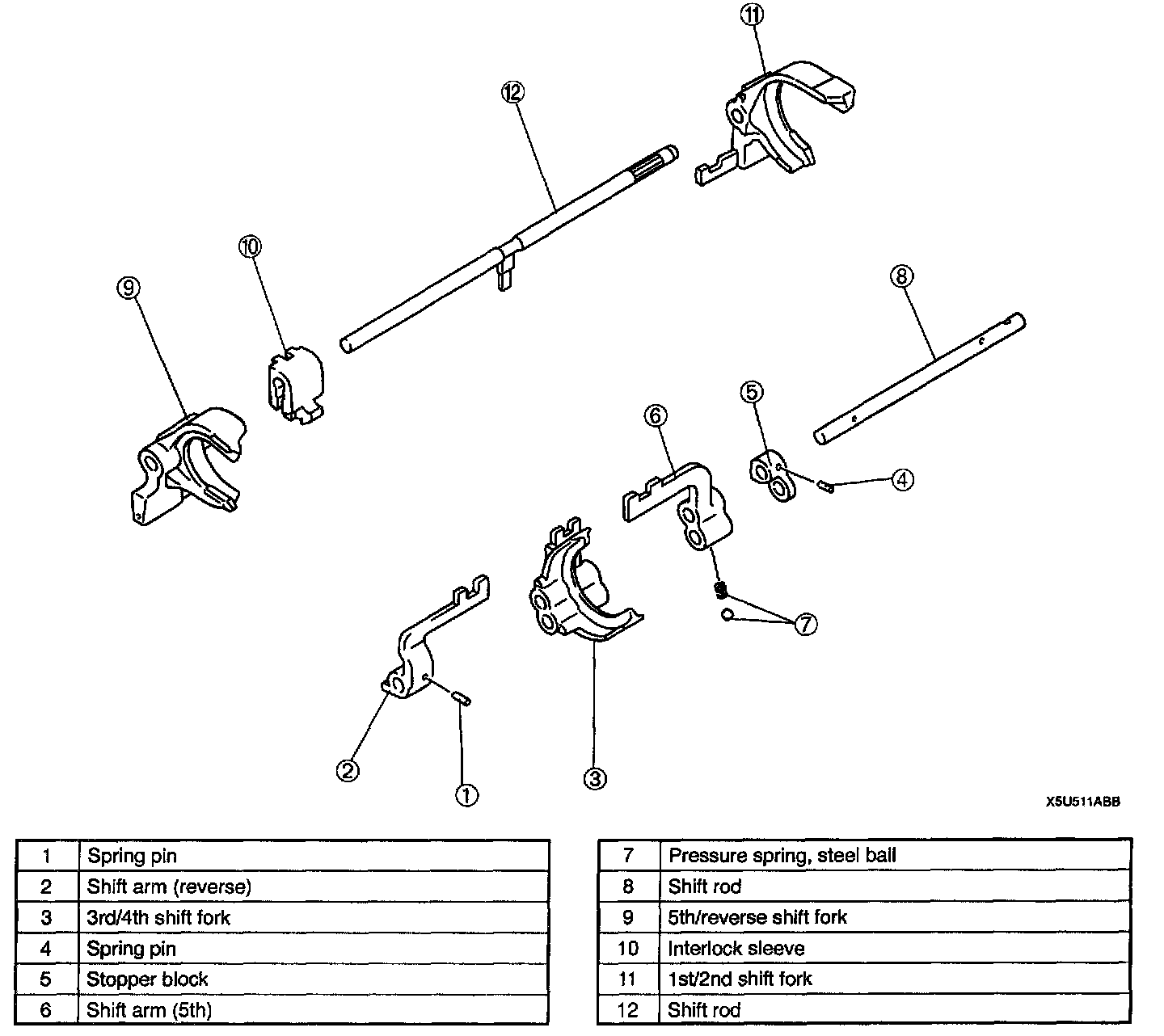SHIFT FORK AND SHIFT ROD COMPONENT DISASSEMBLY