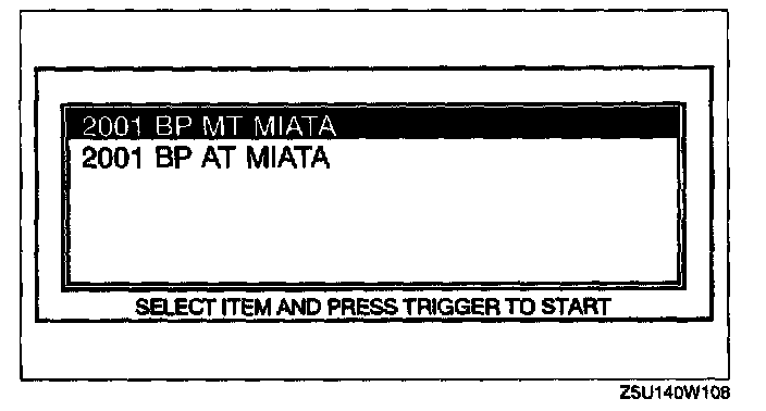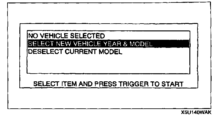 4. Move the cursor to SELECT NEW VEHICLE YEAR & MODEL. Press the trigger key to enter this selection.