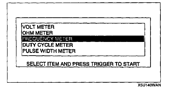 11. Move the cursor to FREQUENCY METER. Press the trigger key to enter this selection.