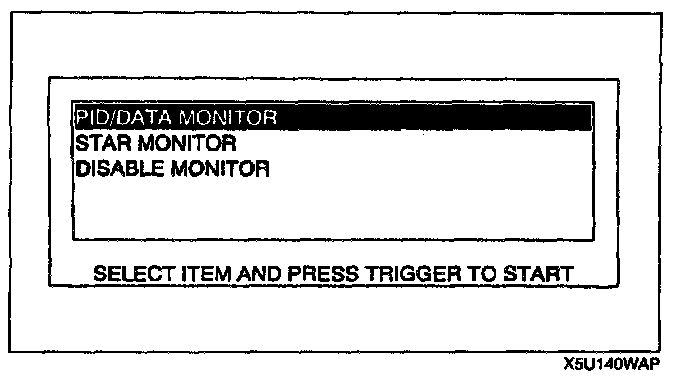 13. Move the cursor to PID/DATA MONITOR. Press trigger key to enter this selection.