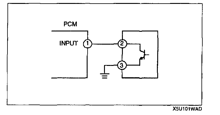 1. Measure the #1 PCM terminal voltage and confirm that it is at 0 V or 5 V when the ignition switch is at ON and the engine at idle.