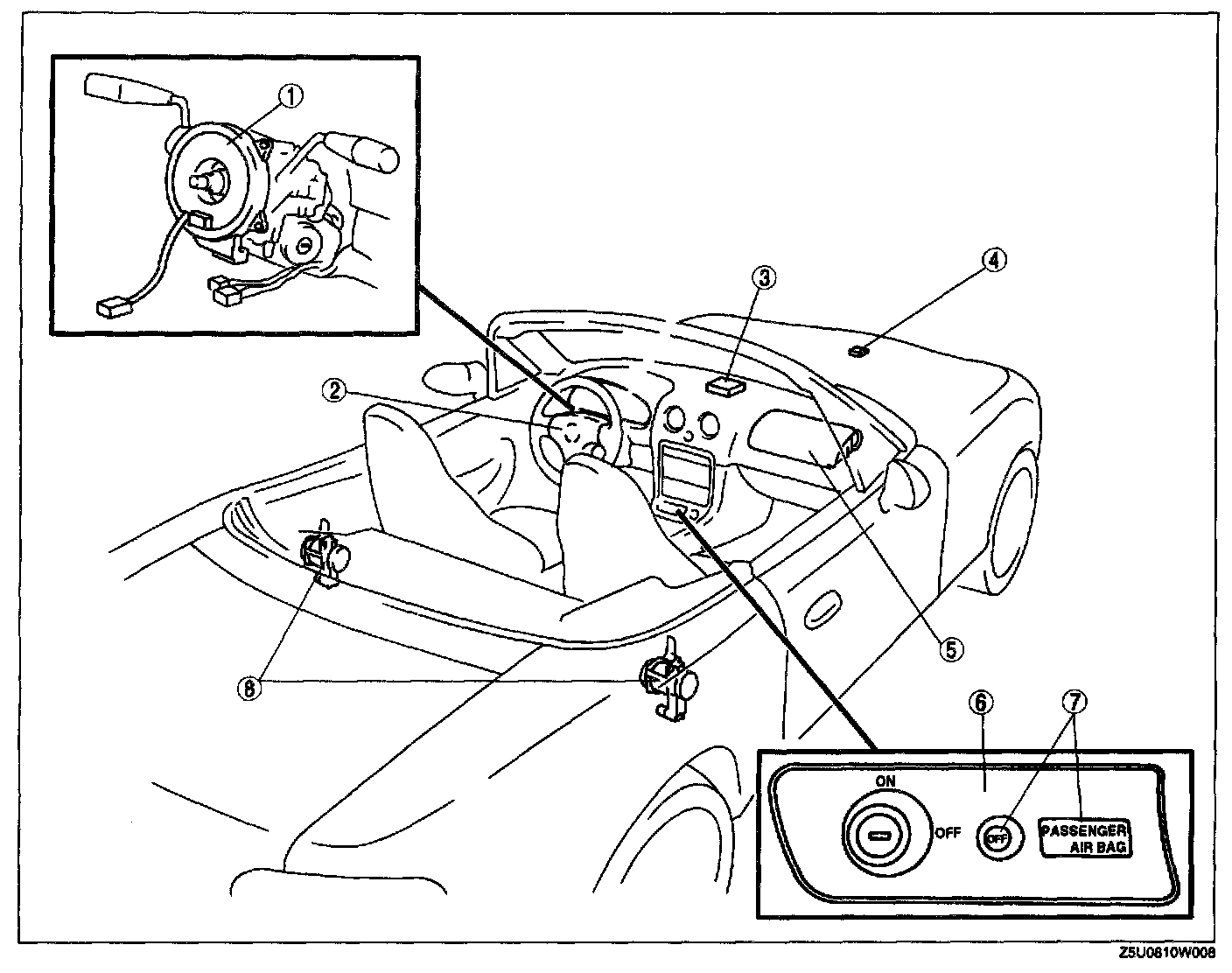 7. Passenger air bag deactivation (PAD) switch warning light and Passenger air bag deactivation (PAD) switch illumination bulb