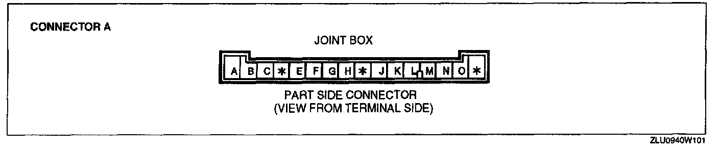 Connector B, C, and D (Terminals except 1B, 1M, 1N, 2D, 2T, 3A, 3F, 3H, 3J, and 3K)