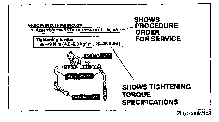 Inspection and adjustment procedures are divided into steps. Important points regarding the location and contents of the procedures are explained in detail and shown in the illustrations.
