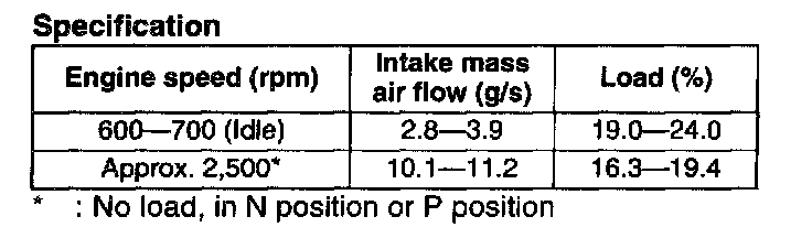 NOTE: The scan tool shows the mass air flow rate and load value.