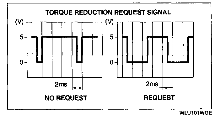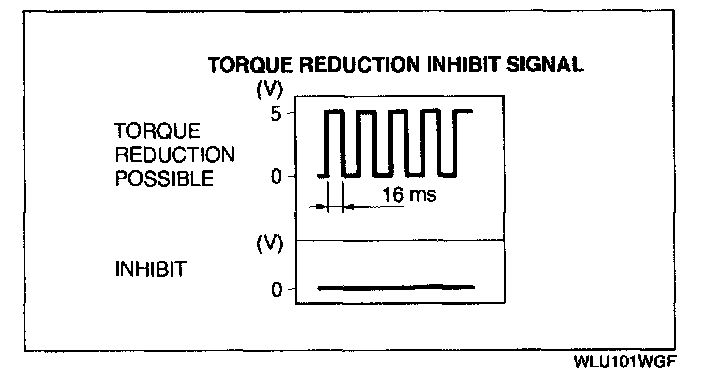 4. With no electrical load operating, inspect the torque reduction inhibit signal at the ABS/TCS control module L terminal using an oscilloscope.