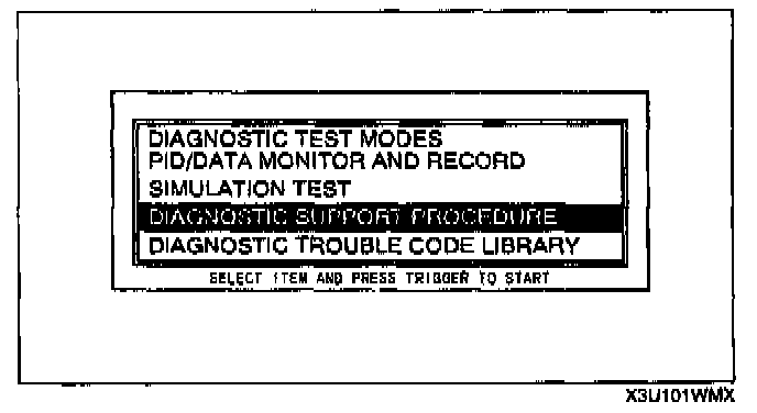 3. Move the cursor to DIAGNOSTIC SUPPORT PROCEDURE.