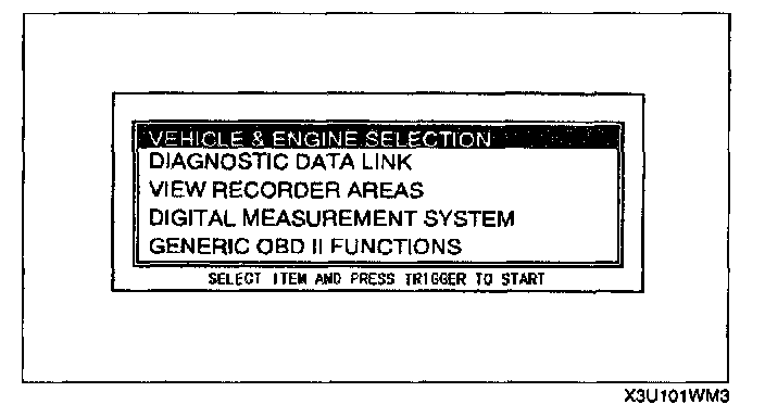 3. Move the cursor to VEHICLE & ENGINE SELECTION.