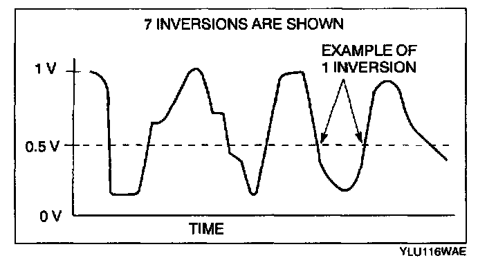 9. Count the number of times (inversions) that the upstream HO2S graph line actually crosses the 0.5 V line.