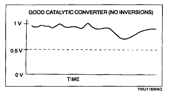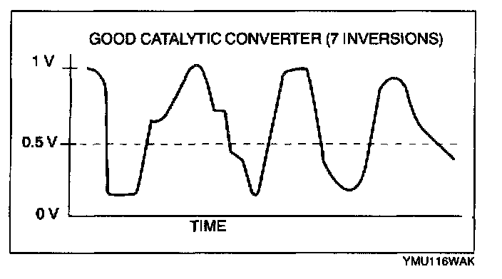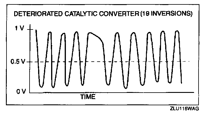 RATIO = 26 inversions (upstream HO2S inversions) + 7 inversions (downstream HO2S inversions) = 3.7 (good converter)
