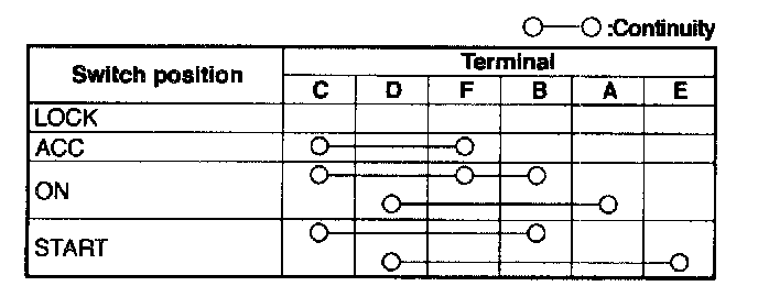 3. Inspect for continuity between the ignition switch terminals using an ohmmeter.