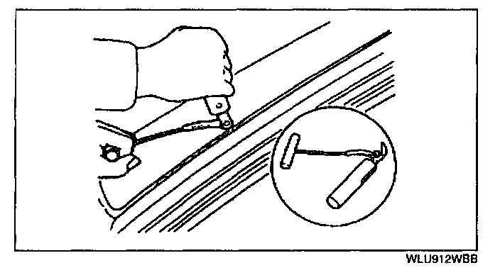 11. Working with another person, saw through the sealant around the edge of the glass. Use a long sawing action to spread the work over the whole length of wire to prevent it from breaking. Make sure the wire does not rub on the body.