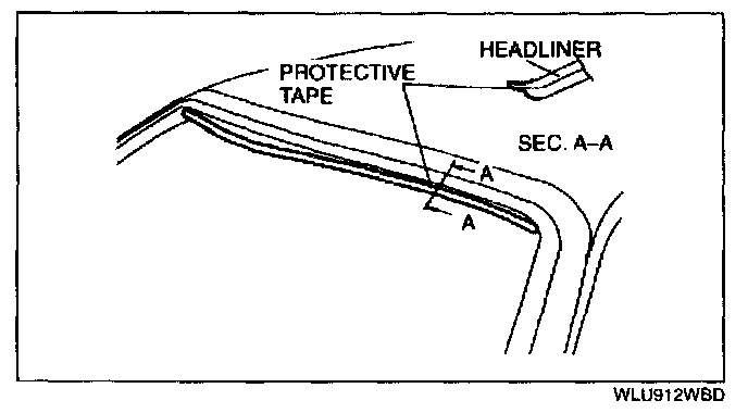 7. Apply protective tape along the rear edge of the headliner to protect it from damage.
