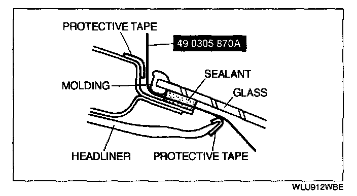 5. Apply primer to the bonding area of the molding, glass, and body using a brush. Use only glass primer on the glass, and body primer on the body and molding. Keep the area tree of dirt and grease, and do not touch the surface. Allow it to dry for approximately 30 minutes.